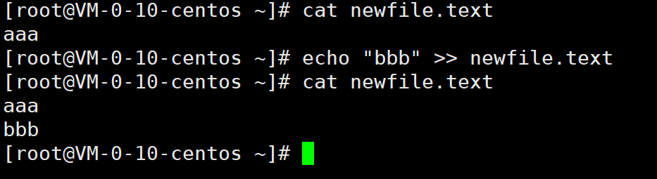 若想要不覆盖原数据写入的话,可以使用输出追加重定向