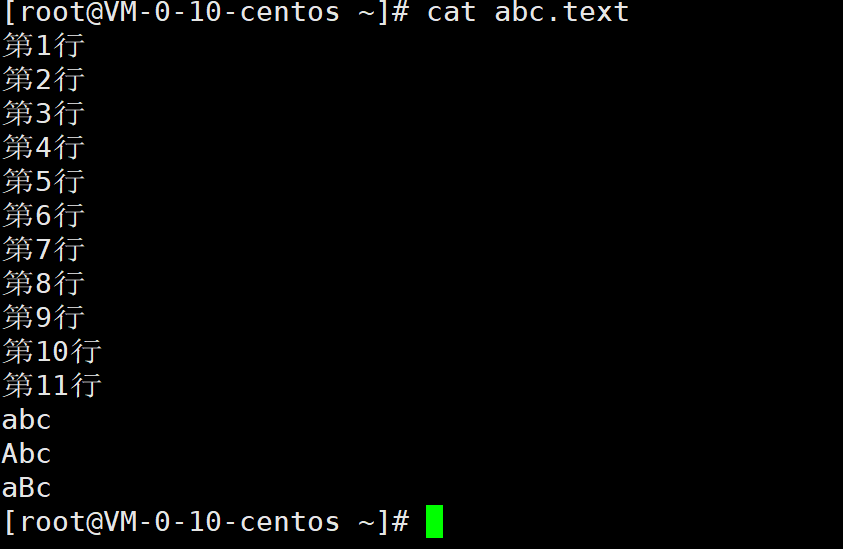 grep在搜索时是大小写敏感的,现在重新修改一下abc.text的内容