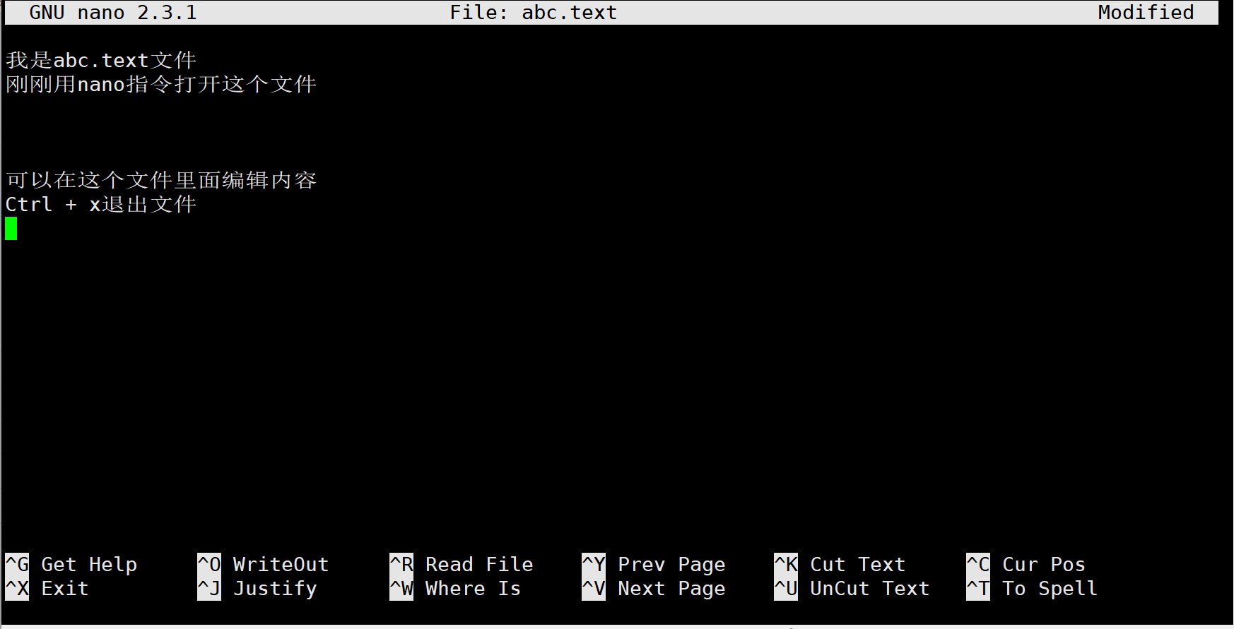(2)nano:用nano指令后面跟上文件名相当于用记事本打开这个文件