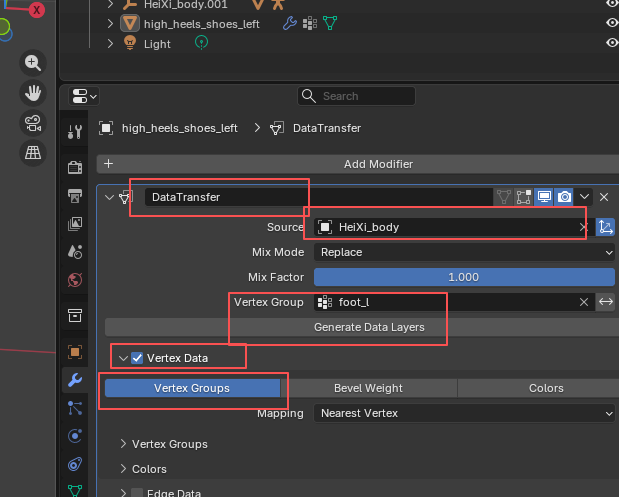 Vertex Groups面板,选择你想绑定的骨骼(比如foot.l)。 -