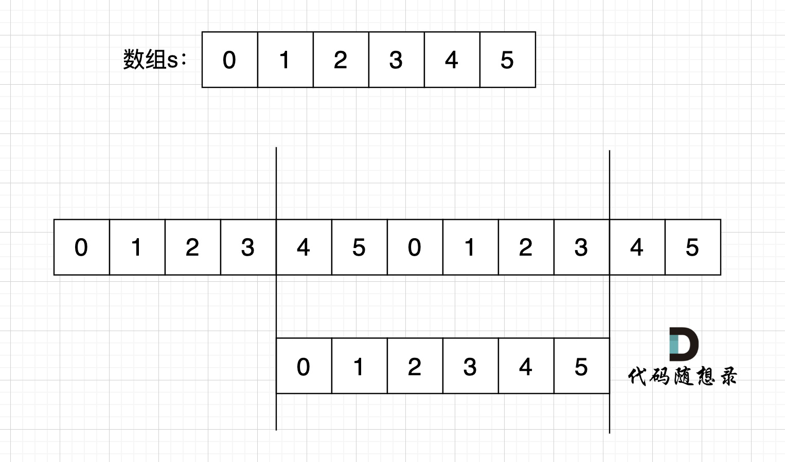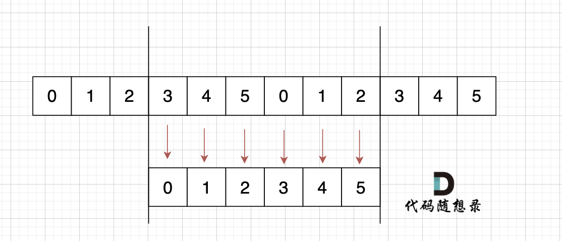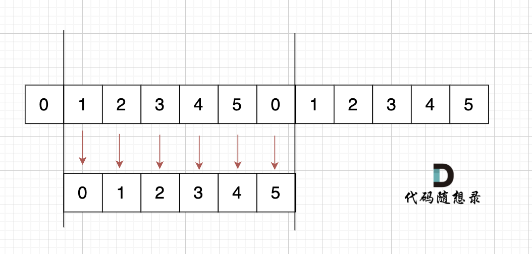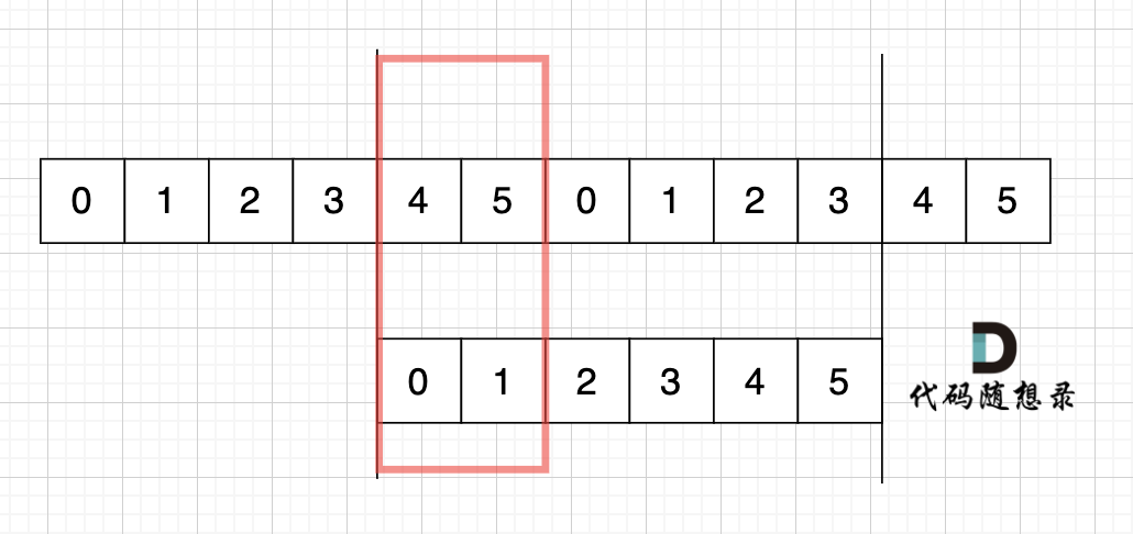 如图,字符串s,图中数字为数组下标,在 s + s 拼接后, 不算首尾字符,中间凑成s字符串。 (图中数字为数组下标)