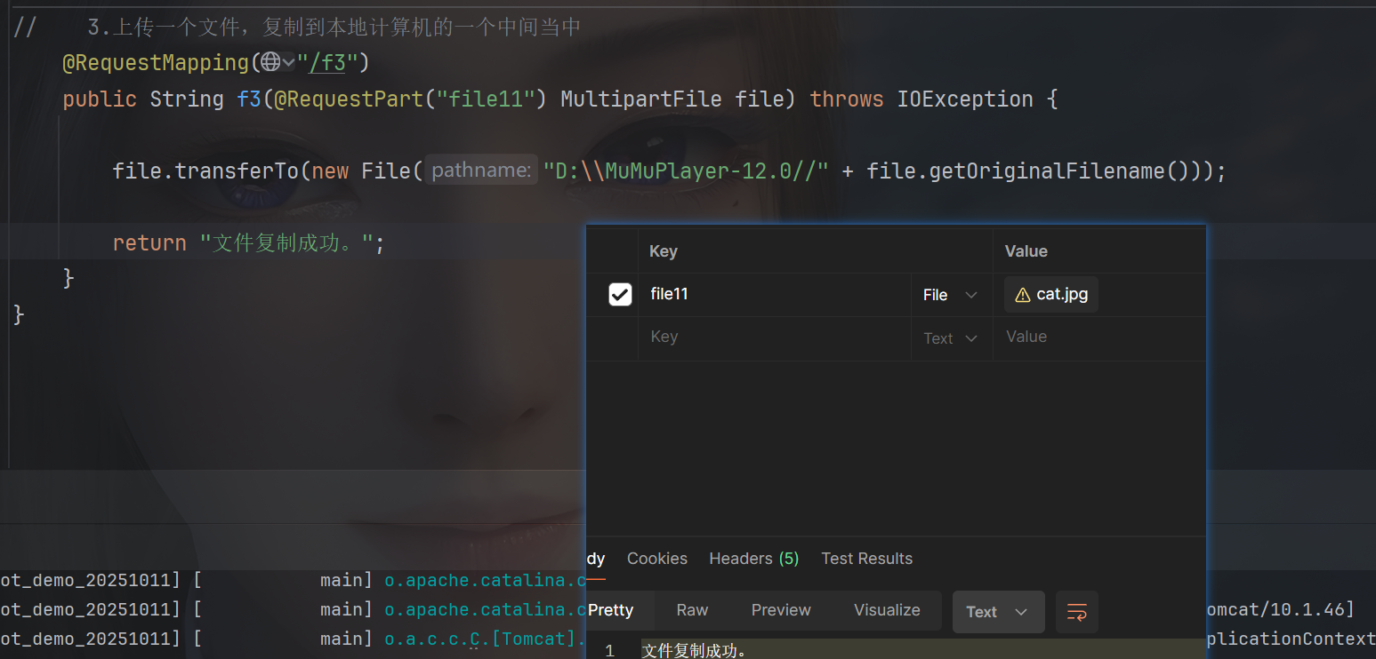 后端代码,文件名 可以 重命名,这里需要用一个新的注解:@RequestPart( ),括号里面,填写一个和发送方相同的参数名。