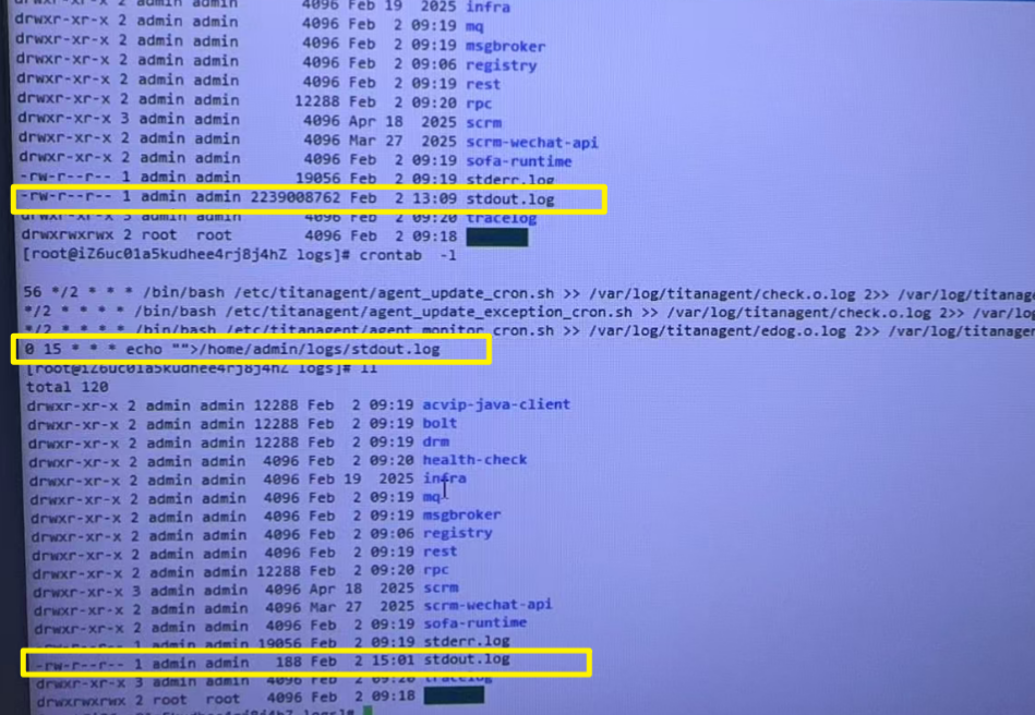 0 15 * * * echo "">/home/admin/logs/stdout.log
