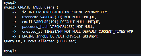 ) ENGINE=InnoDB DEFAULT CHARSET=utf8mb4;