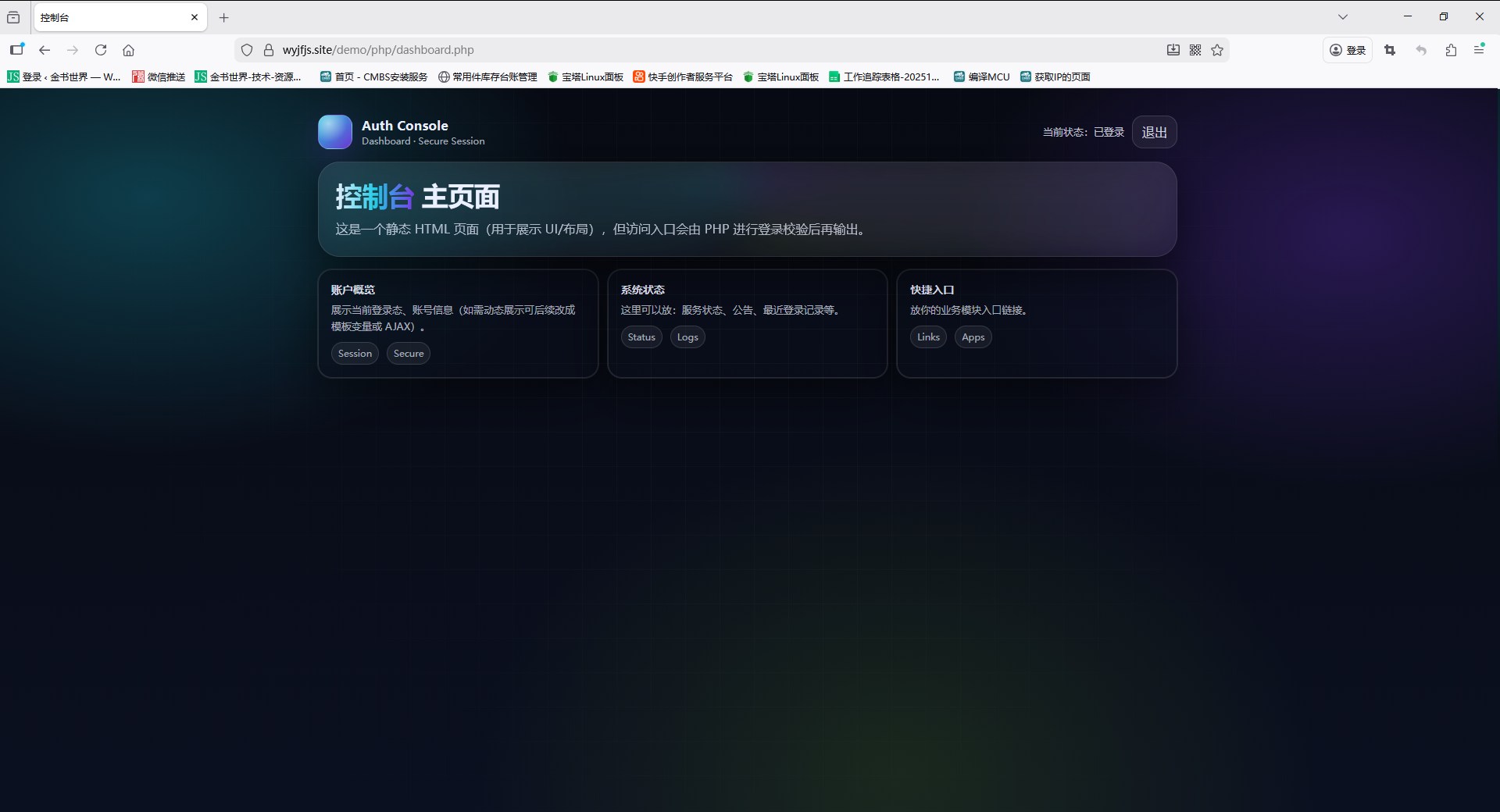 <p>展示当前登录态、账号信息(如需动态展示可后续改成模板变量或 AJAX)。</p>
