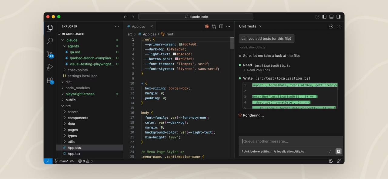 通过终端直接通过自然语言操作。它不仅能写代码,还能自主运行测试、解释复杂的架构、甚至执行终端命令来修复错误。其背后依托的是推理能力极强的 Claude 3.5/3.7 Sonnet 模型。