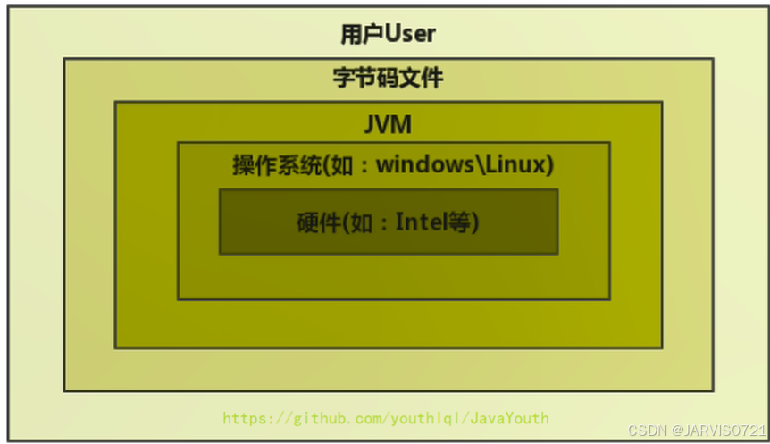 JVM是运行在操作系统之上的,和硬件之间没有直接交互
