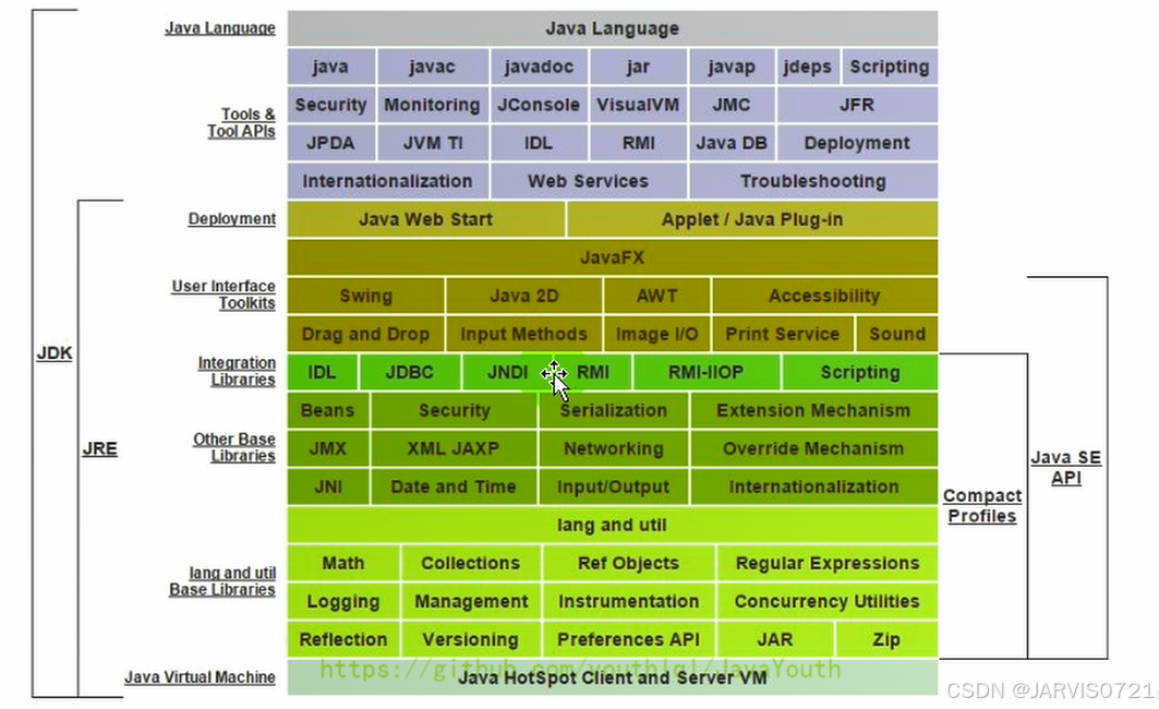 JRE:java运行时的环境,Java程序运行需要的最小环境。包含了JVM和一组java类库,用于支持Java程序执行。JRE不包含开发工具,只提供Jva程序运行需要的环境。