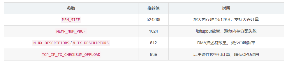 配置完成后需重建BSP工程,确保参数生效。这些优化可使TCP速率从70Mbps提升至650Mbps以上,对于UDP通信同样能显著降低处理延迟。