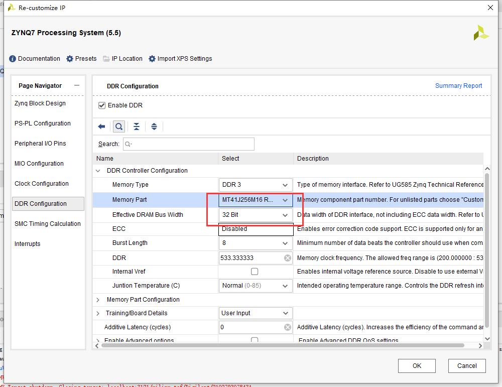 将 QSPI 的引脚速度全部改为 fast。 配置 DDR3 控制器。配置完成点击"OK"。