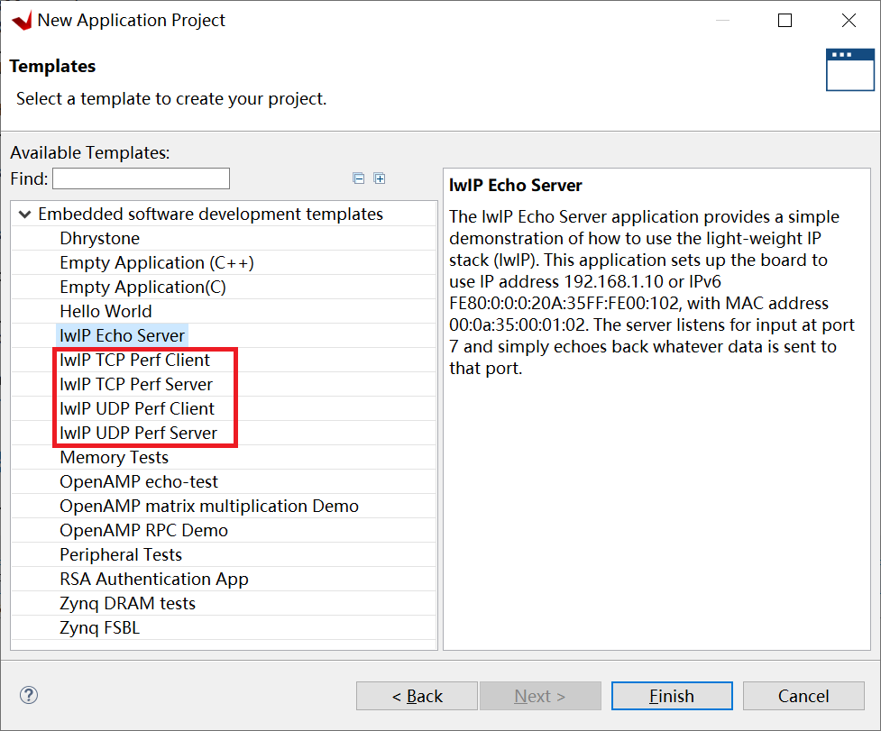 选择UDP Perf server模板