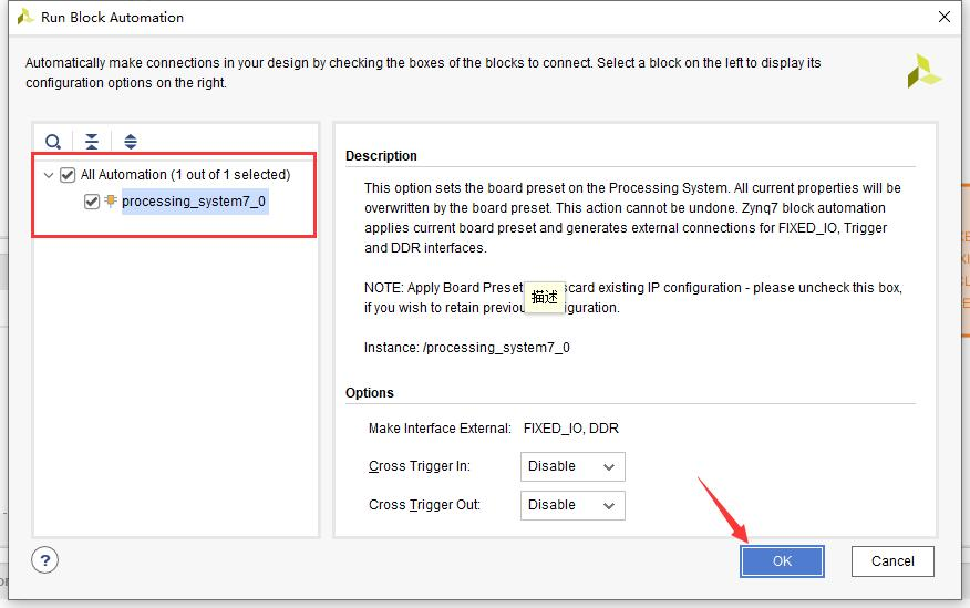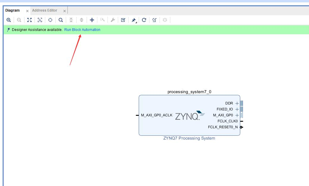 在 Diagram 界面点击 Run Block Automation,在弹出的对话框中选择全部接 口,然后点击"OK"。