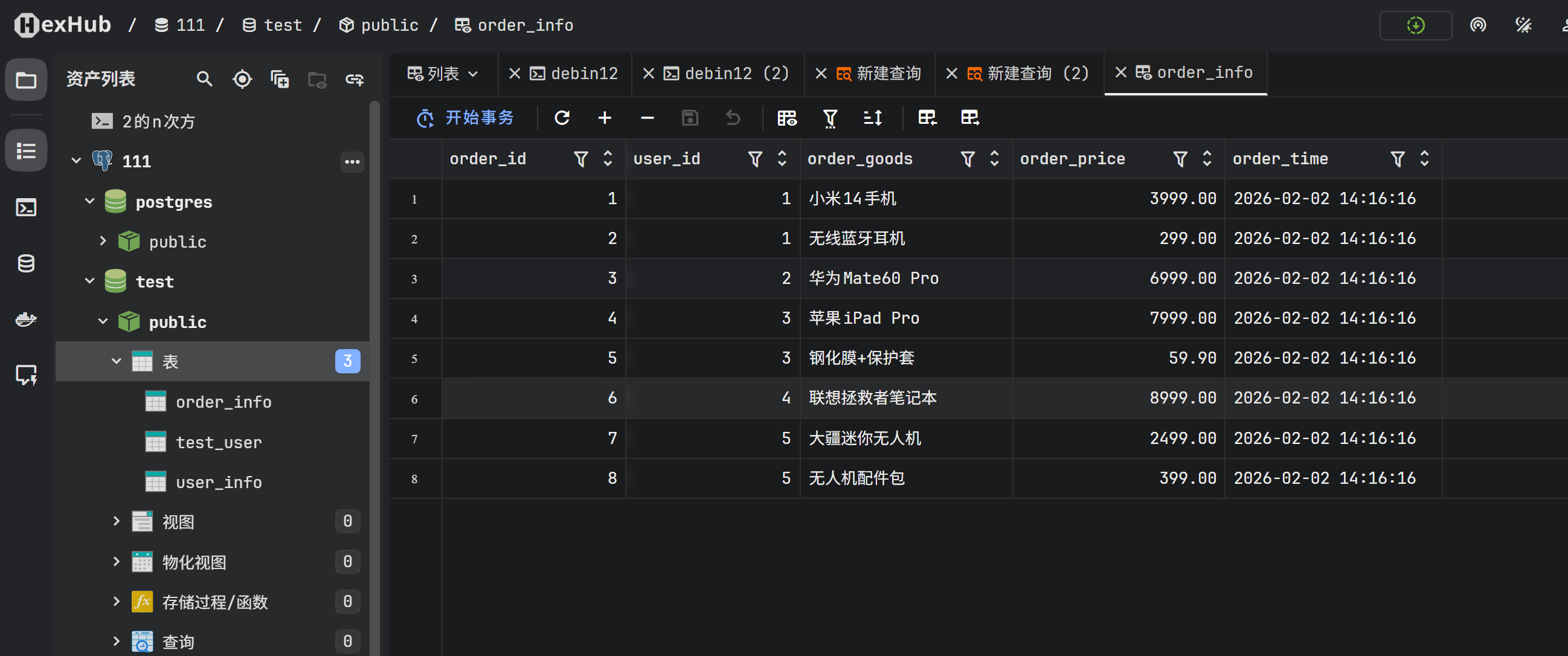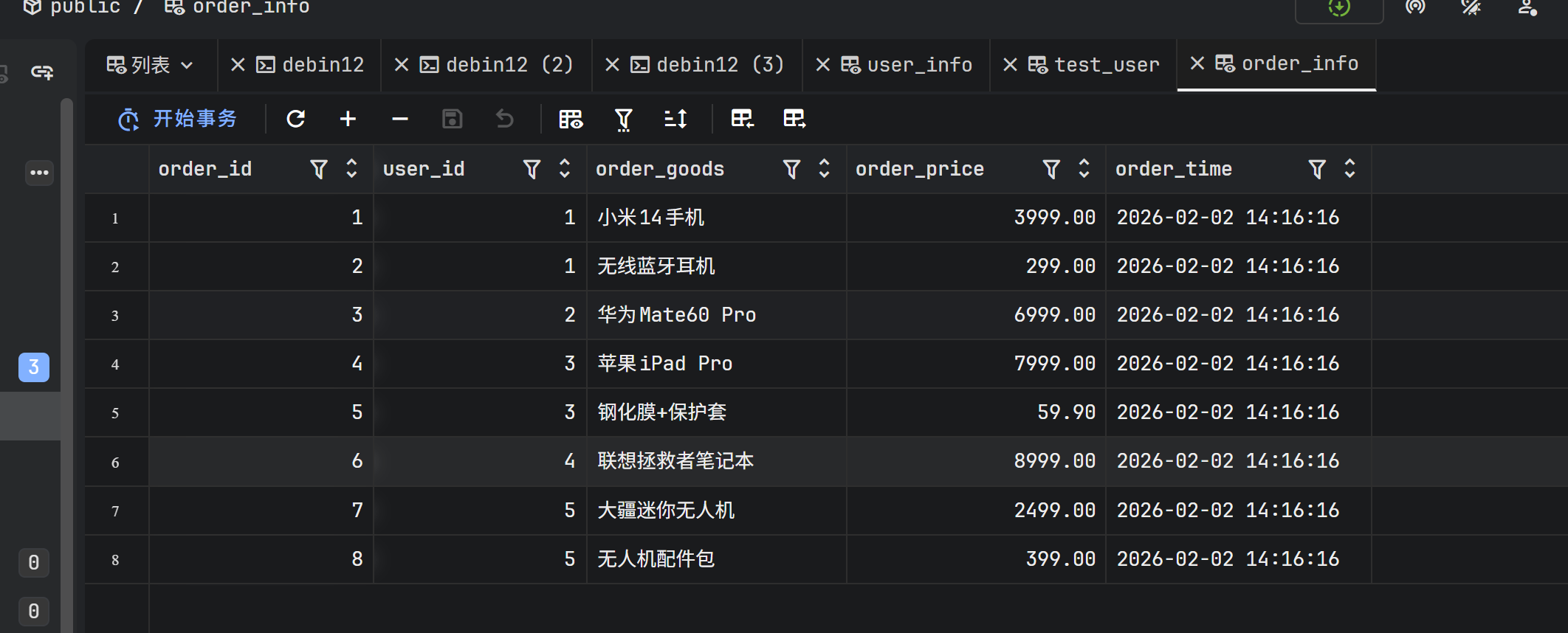 同样成功返回了 order_info 表的数据。