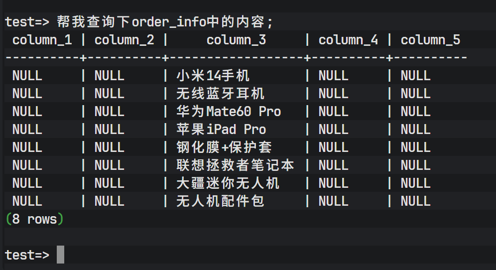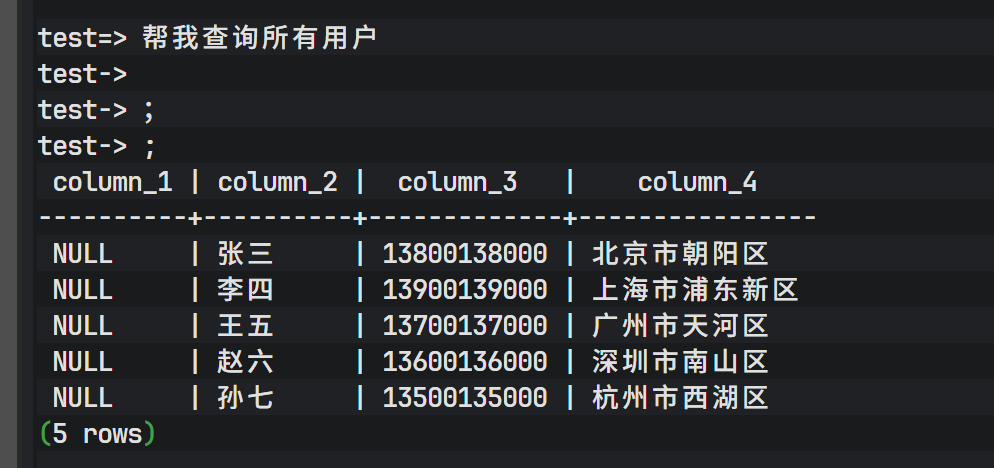 现在,我们输入自然语言指令而非 SQL: