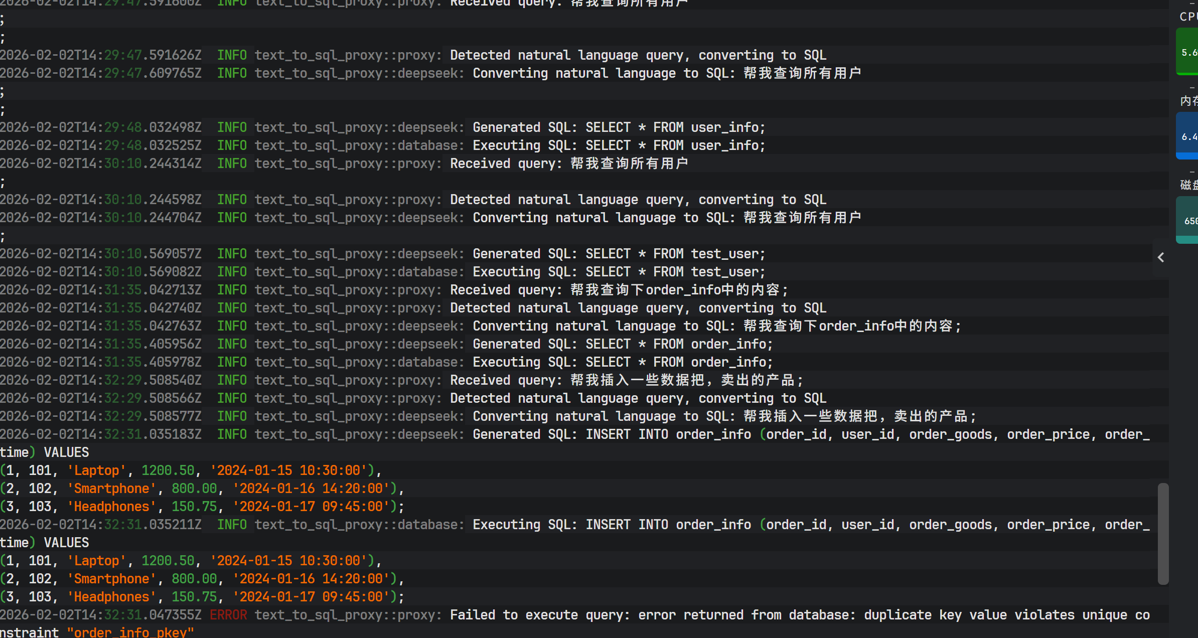 在当前数据库交互范式演进的过程中,将自然语言(Natural Language, NL)直接转化为结构化查询语言(Structured Query Language, SQL)已成为提升数据可访问性的关键技术路径。本文将深度剖析如何利用系统级编程语言 Rust 的高性能特性,结合 PostgreSQL Wire Protocol(数据库传输协议)与 DeepSeek 大语言模型的推理能力,构建一个透明的数据库代理层。该代理服务能够拦截客户端请求,智能识别自然语言指令,并在毫秒级时间内将其转换为可执行的高效 SQL 语句,最终在真实的 PostgreSQL 数据库中执行并返回结果。
