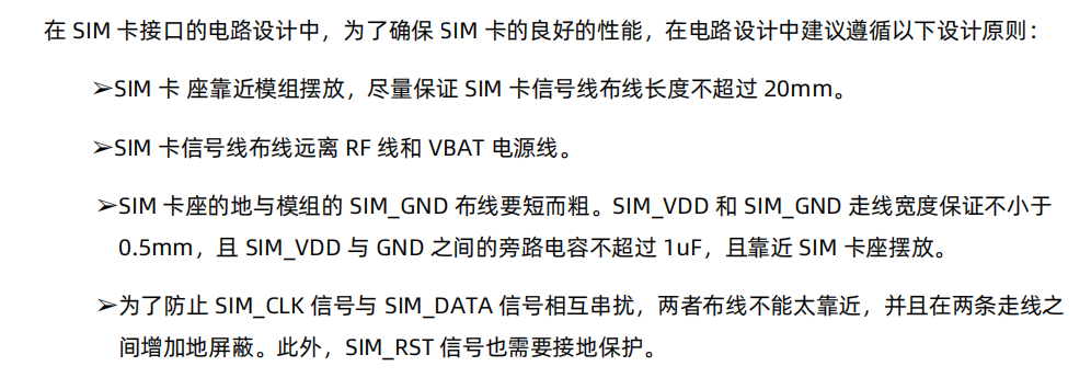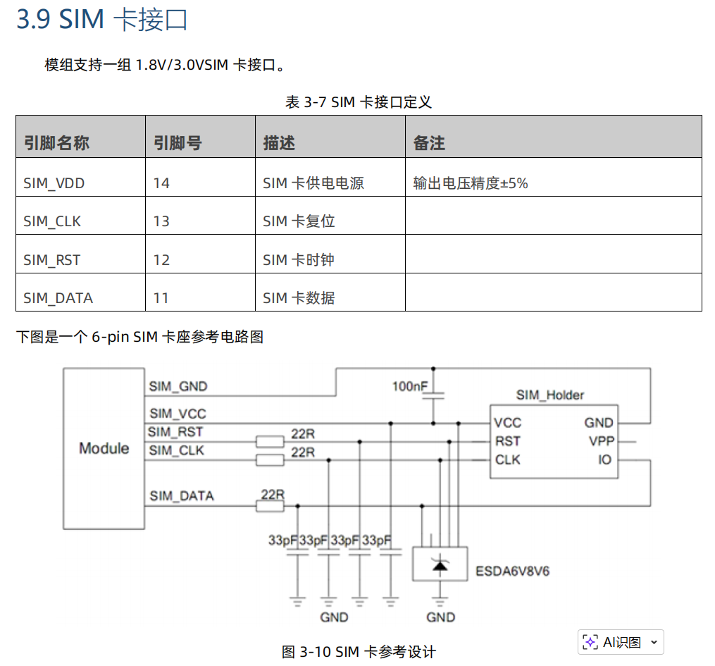 | 低频储能电容 | 1μF ~ 4.7μF | 提供瞬态电流,防止电压跌落(尤其当 SIM_VDD 走线较长时) |