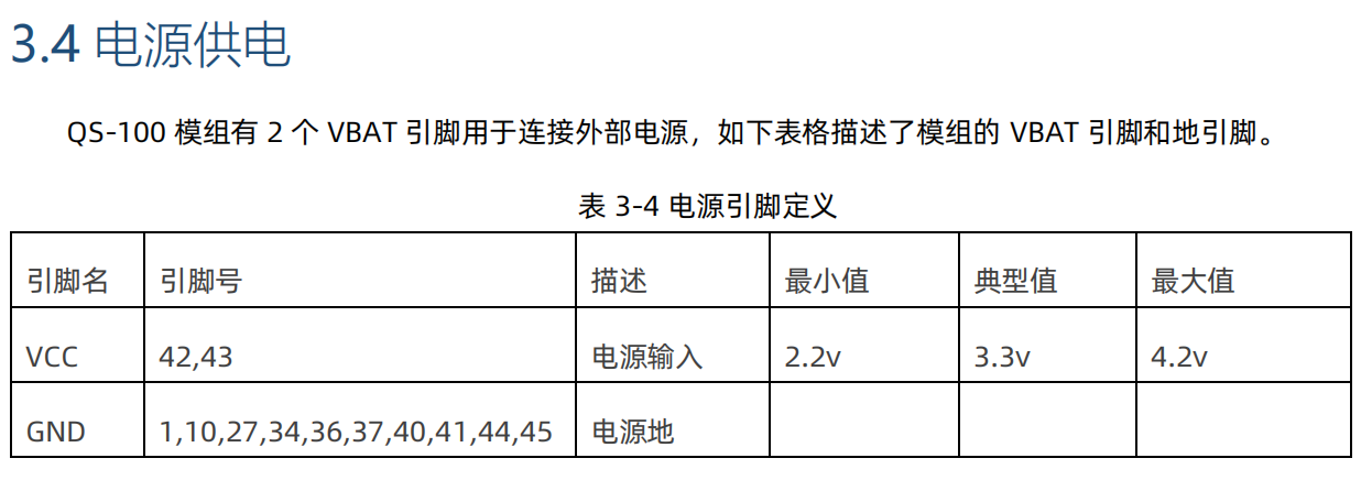 QS-100 模组采用 44pins 的 LGA 封装,其尺寸为 15.8mm*17.7mm*2.2mm。