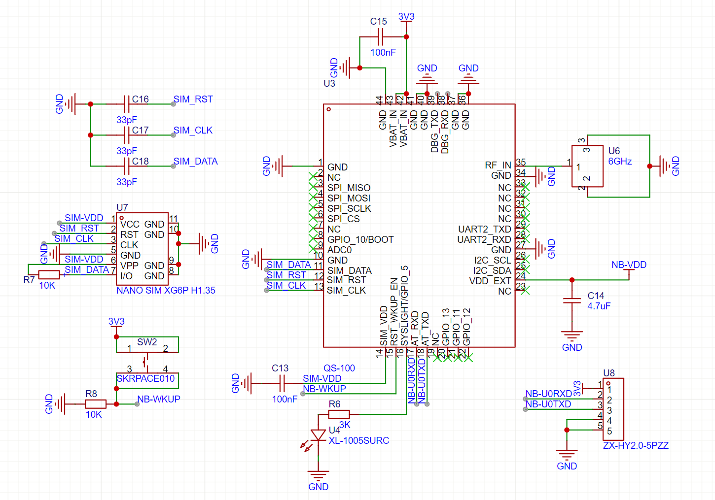 - 33pF + 100nF 必须靠近 SIM 卡座放置
