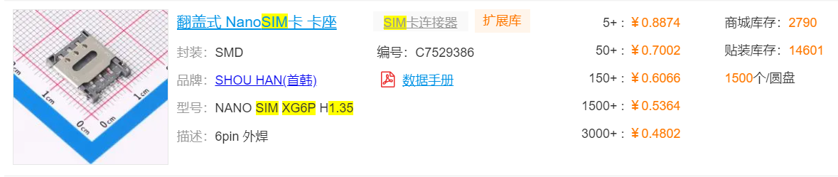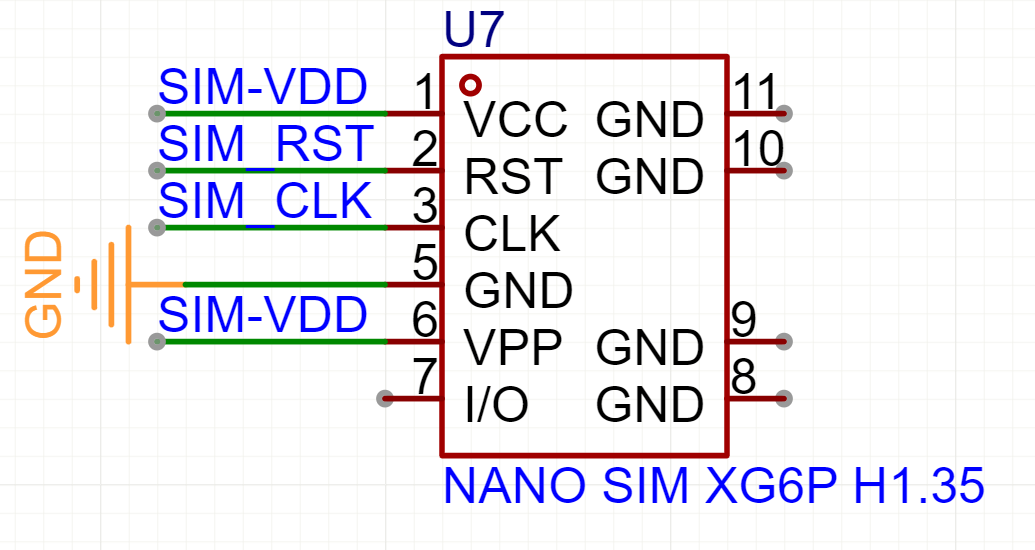 注意,手册没有给示例电路和引脚连接图,因此你需要记住:VPP VCC都是要连SIM-VDD的,其余引脚很好辨认与主控的网络连接。