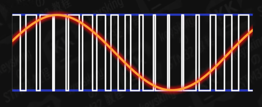 PWM应用于数字信号模拟模拟信号,通过高电平的占空比来换算成电压差,有一点类似高中学习的周期电路的有效电流的换算。