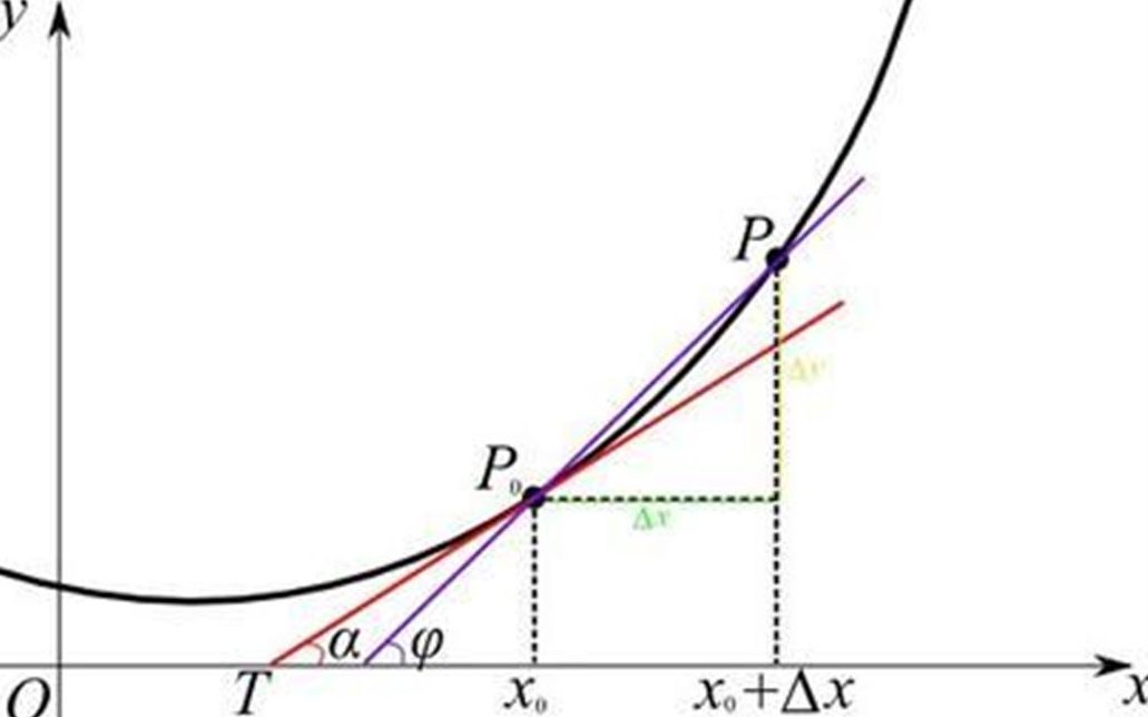 当p与p0点无限靠近时,p与p0点的连线就是p0点的切线,该切线的斜率就时p0点的瞬时速度。
