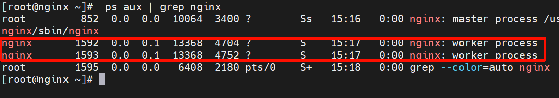 [root@Nginx ~]# nginx -s reload [root@Nginx ~]# ps aux | grep nginx
