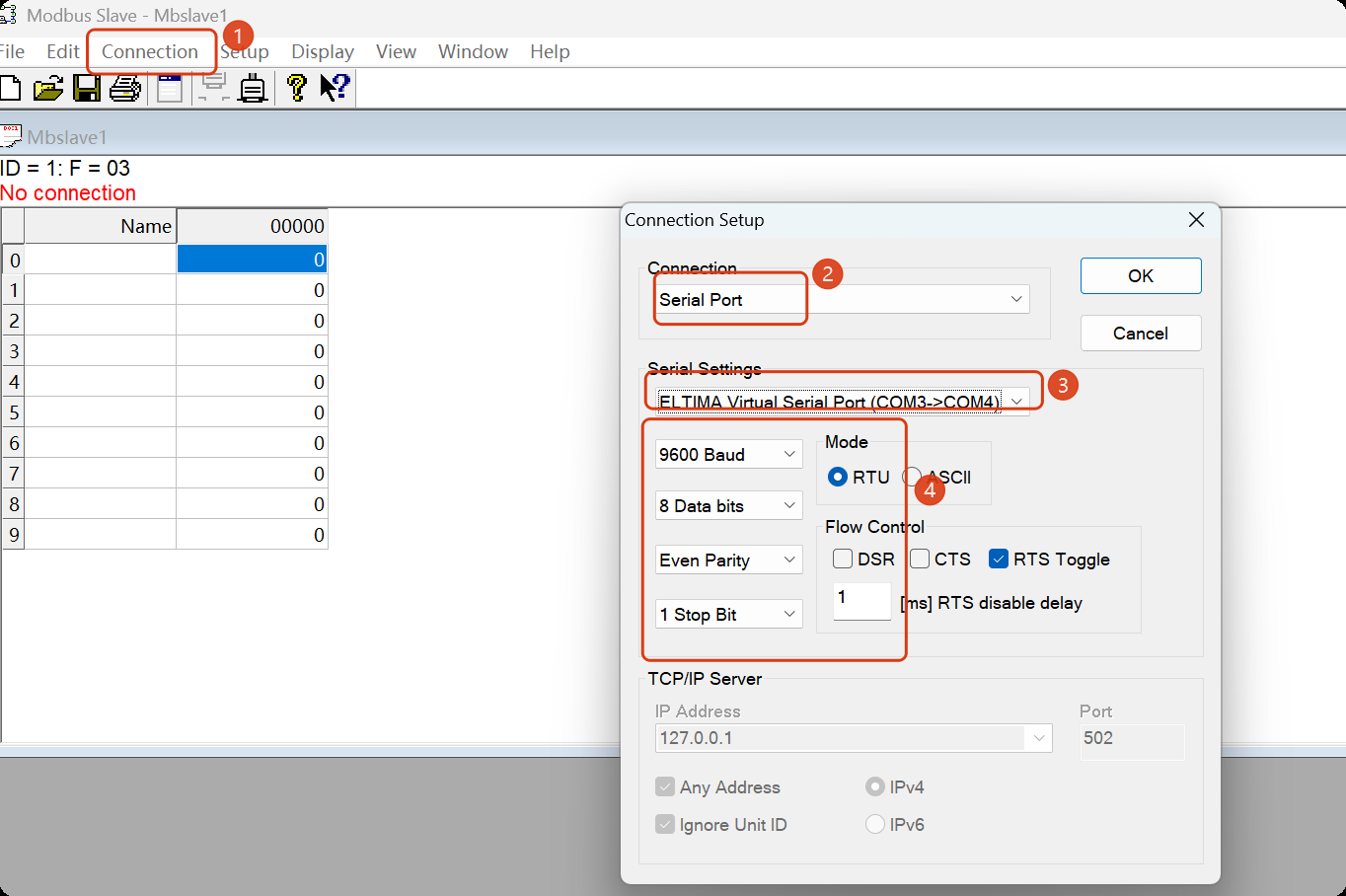5.2 使用 Modbus Slave 配置从站参数并绑定到虚拟串口