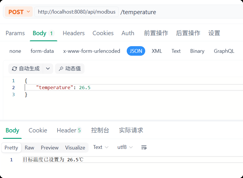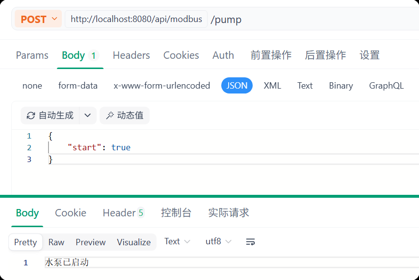 /api/modbus/temperature:设置目标温度/api/modbus/pump:启停水泵/api/modbus/write:通用寄存器写入