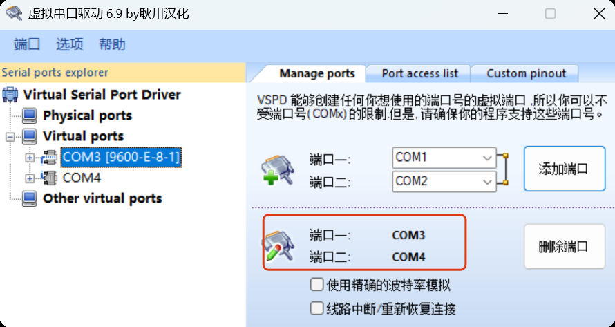 由于 Modbus Slave 和 Java 程序不能同时占用同一物理串口,我们需要虚拟串口对 ,使用 Virtuak Serial Port Driver (VSPD)工具模拟。