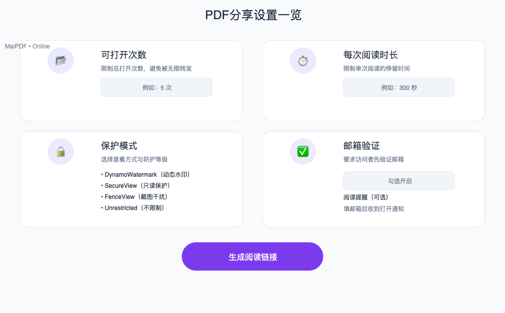 下面用流程图梳理麦瓜PDF在"安全分享"场景里的核心流程与关键控制点(均为官方文档描述)。
