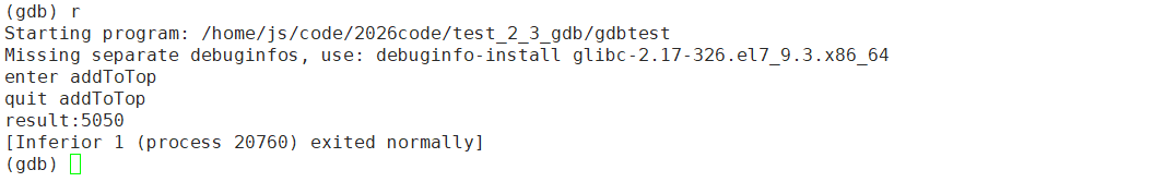 输入r指令,表示润代码就会运行起来,直接就会显示结果最后正常退出