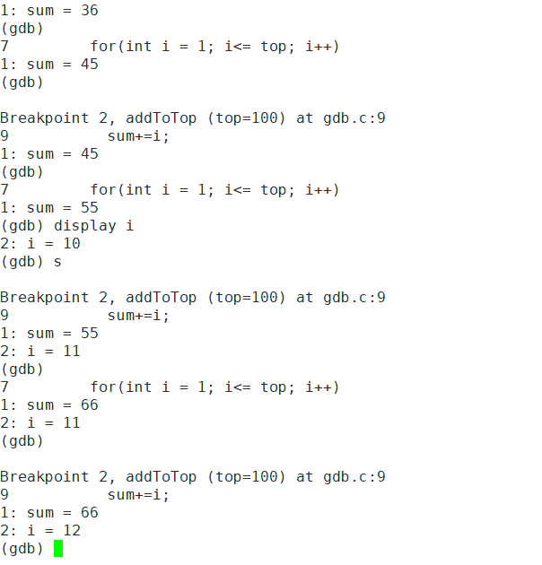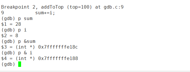 要监视sum,就p sum,相应的 i 和 &sum 也一样