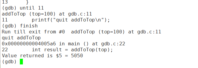 注意:要是有断点在until指定行数的前面的话先取消掉断点才能正常until