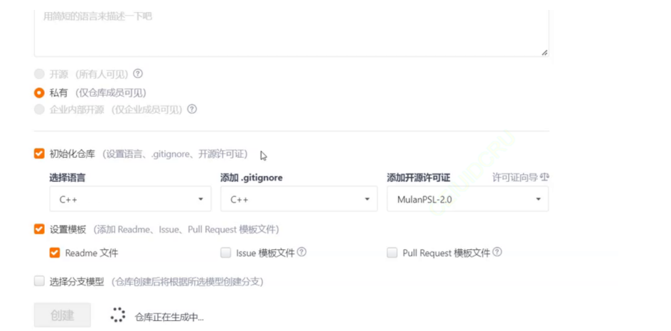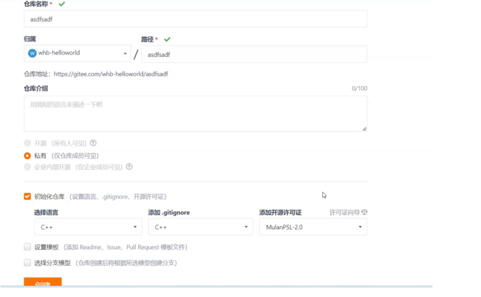 创建仓库设置照搬这个就行,新建仓库现在只能是私有的,后面可以改