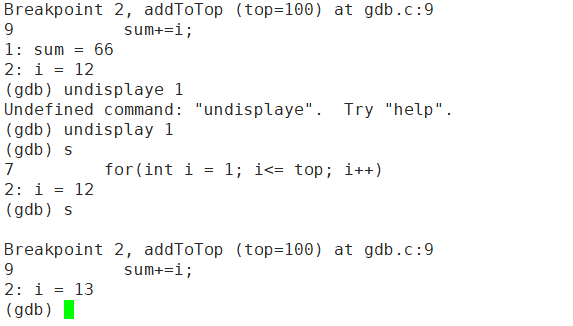 取消常显示则是用 undisplay,但不能直接输入具体名字,要输入对应条目的编号才能取消常显示
