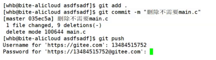 要是想删除文件,直接输入这个指令,就会在git上直接删除