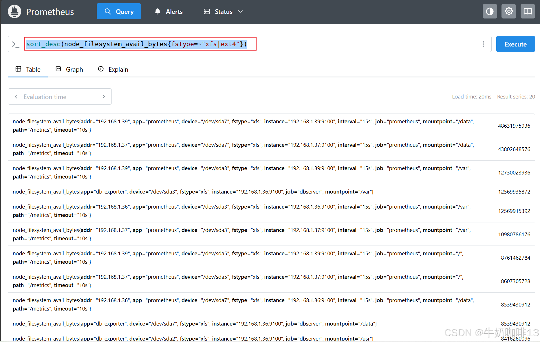 sort_desc(node_filesystem_avail_bytes{fstype=~"xfs|ext4"})