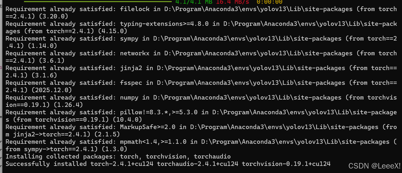 按照以上方式,在环境中成功安装torch相关工具