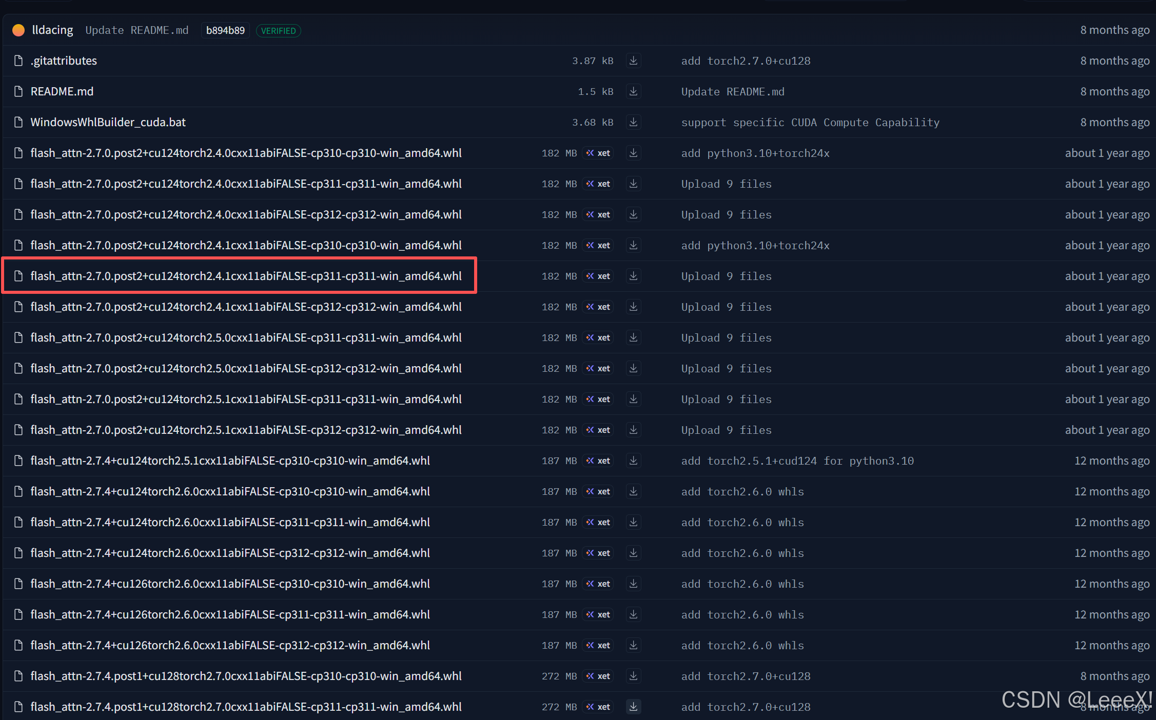 进入flash-attention,选中相对应版本,下载完成之后需要本地安装,复制到yolov13-main文件夹中,cd到yolov13-main文件夹后,进行安装。