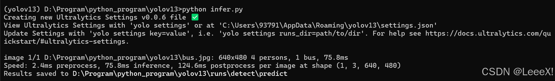 在yolov13-main文件夹中创建一个infer.py脚本,加载检测预训练权重,确保环境没有问题