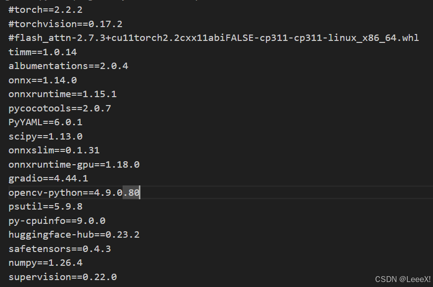 进入yolov13-main 这个文件夹,将前三行给注释掉,因为torch相关的我们已经手动完成安装,以及flash_attn组件是linux版本,我们windows上的需要手动安装。