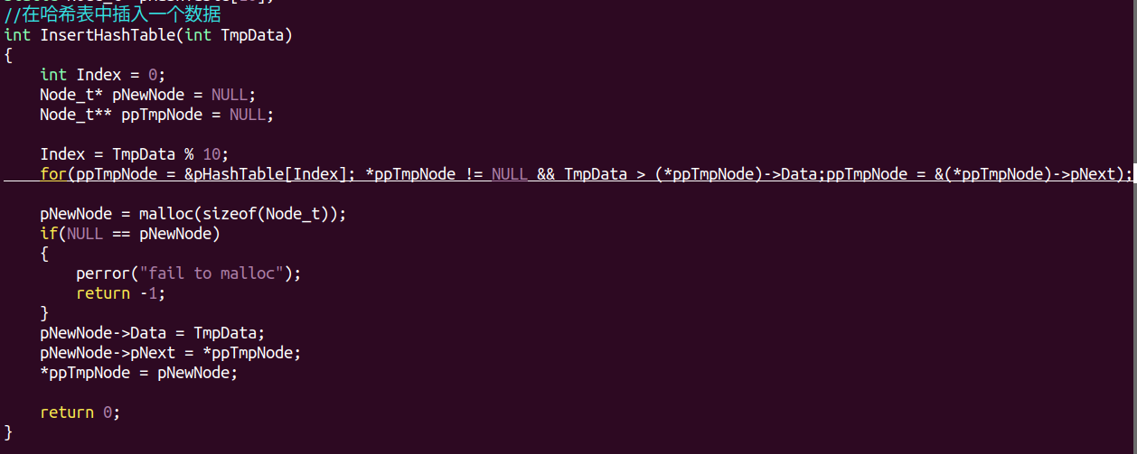 ③在哈希表中插入一个数据(无头链表)