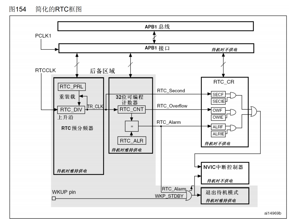 • RTC模块和时钟配置系统 (RCC_BDCR 寄存器 ) 处于后备区域 ,即在系统复位或从待机模式唤醒后, RTC的设置和时间维持不变。