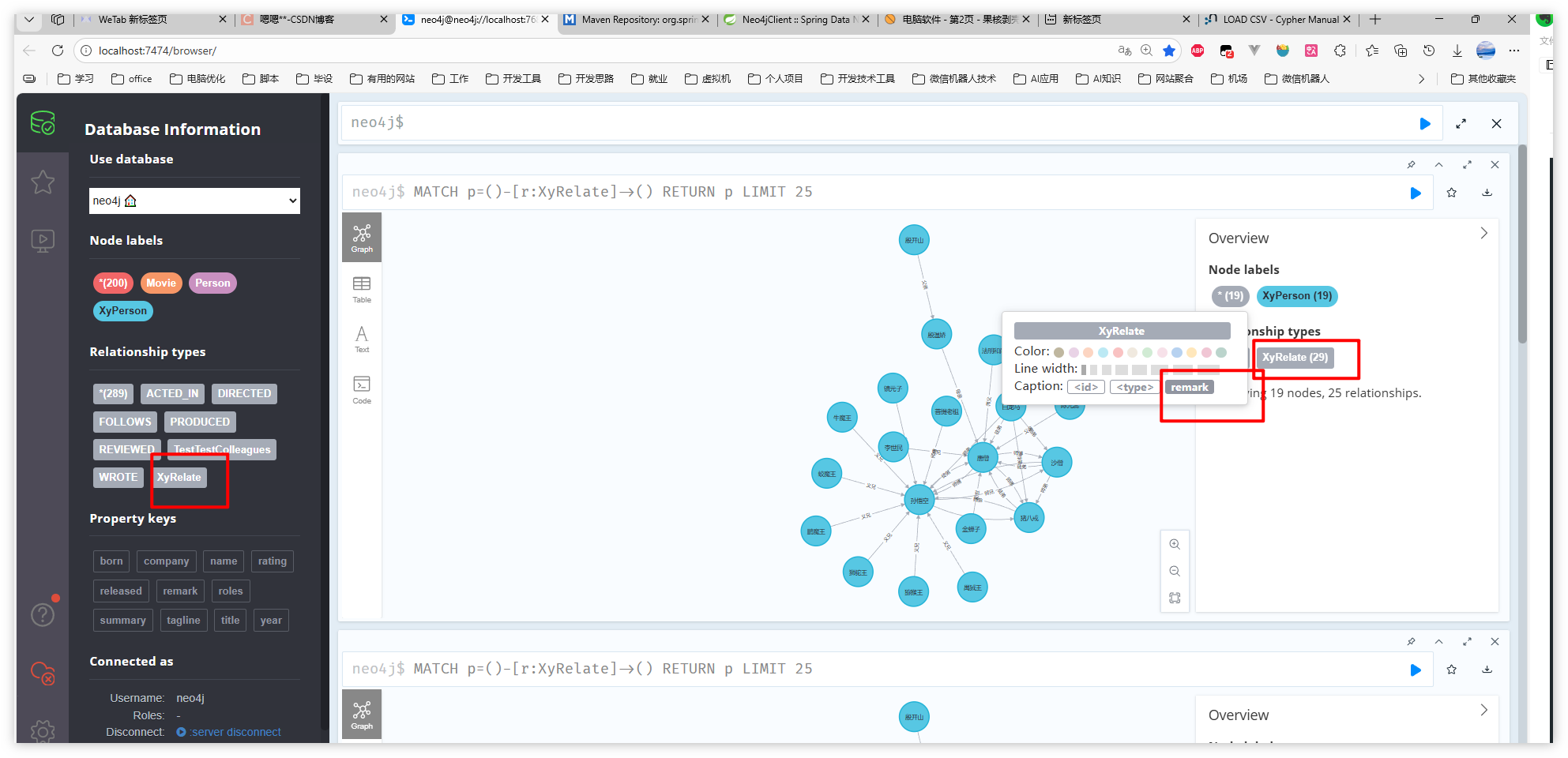 create (person1:Person {name: 'linrc9',year:18})-[:TestTestColleagues {company:'测试测试电信总公司',remark:'备注'}]->(person2:Person {name: 'linrc10',year:19});