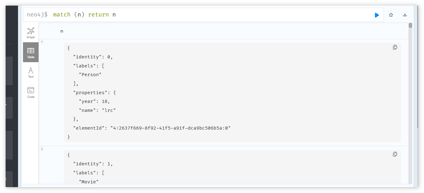 默认: 使用 节点 或者 关系 中的 name 属性 进行展示 在图结果 中