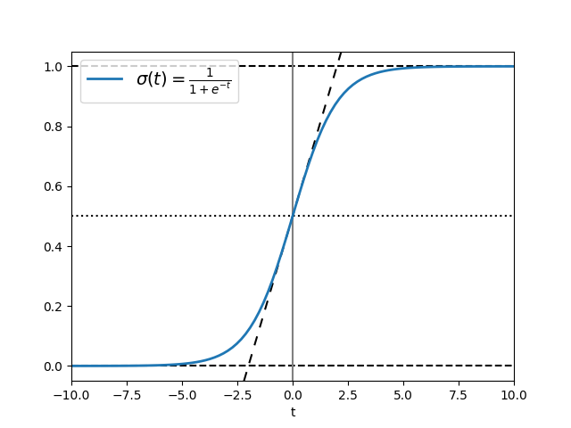 ax.plot(t, sig, linewidth=2, label=r"$\sigma(t) = \frac{1}{1 + e^{-t}}$")