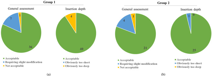 图13. 专家脊柱外科医生对真实志愿者数据集结果的定性评估结果。(a): 第1组规划轨迹的定性评估结果。(b): 第2组规划轨迹的定性评估结果。
