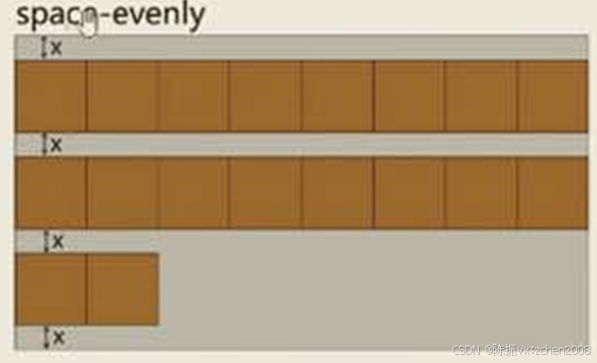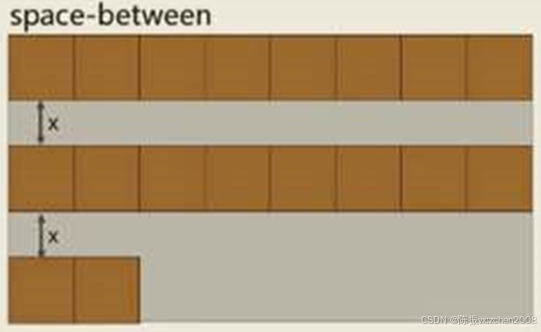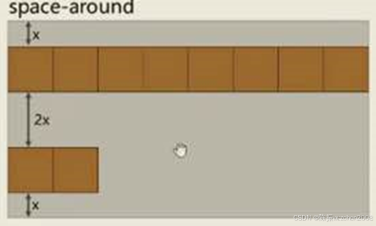space-around :伸缩项目间的距离相等,比距边缘大一倍。