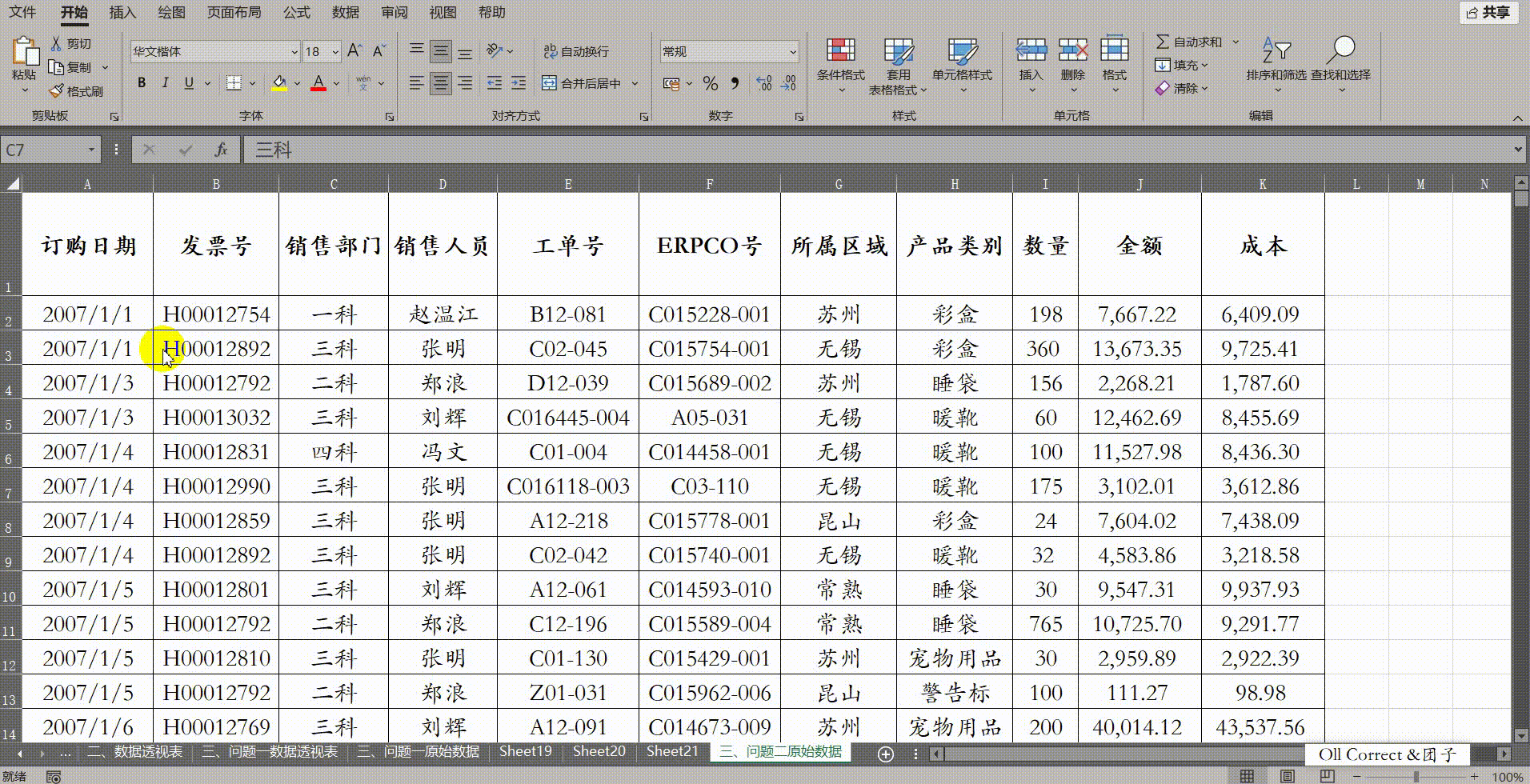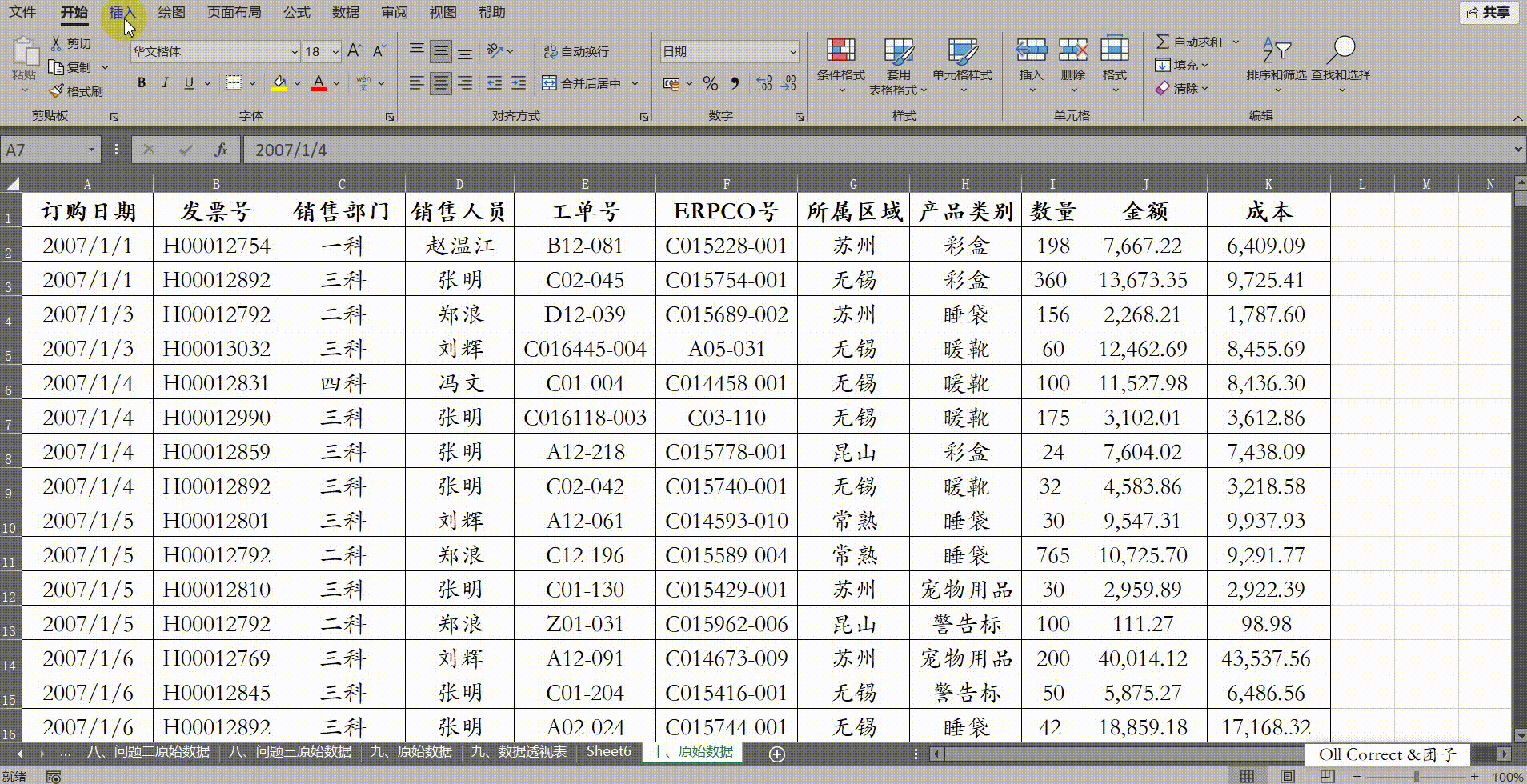 问题二:日期使用"."作为分隔符(如2007.1.1),导致无法在透视表中按年月分组,如何解决?