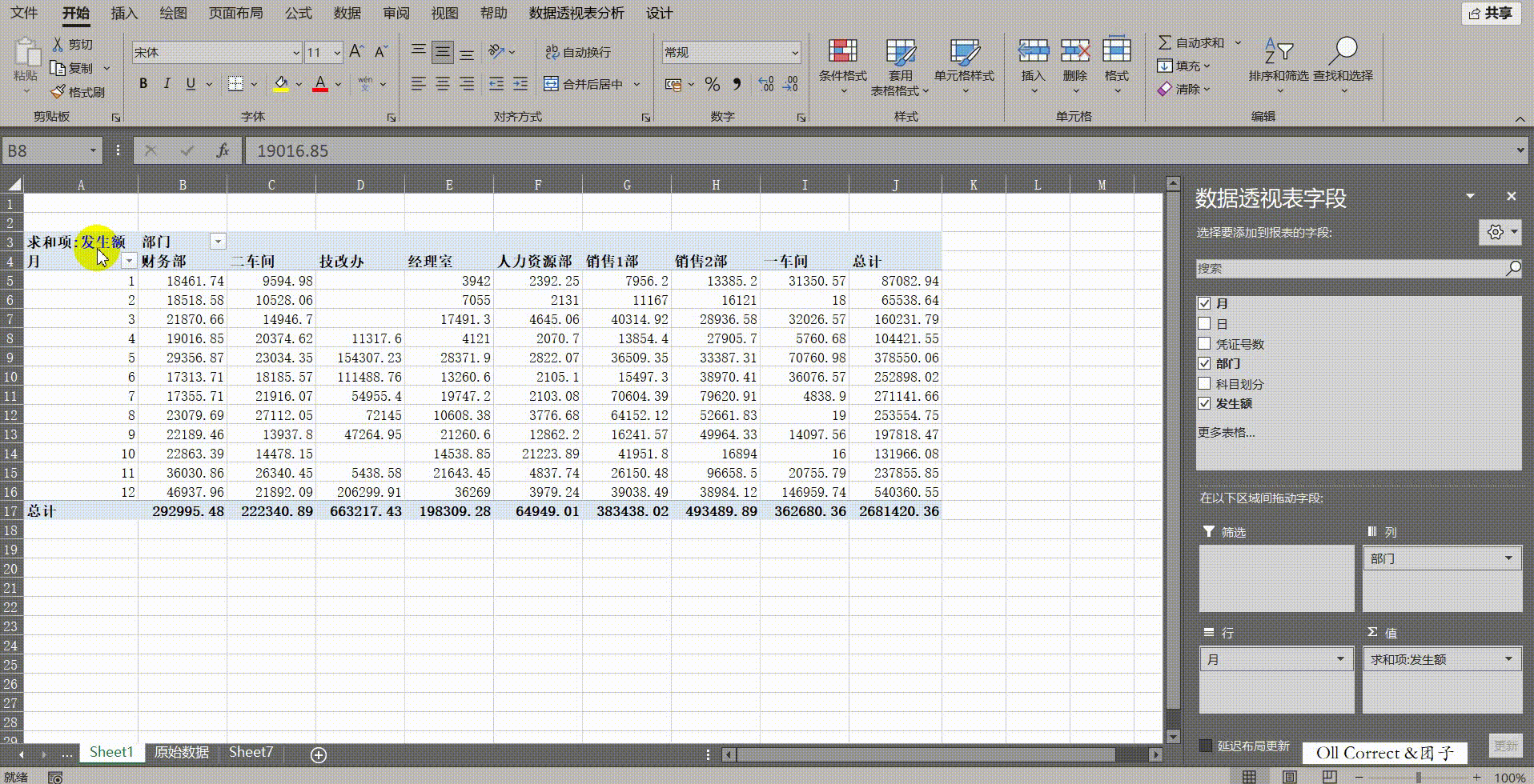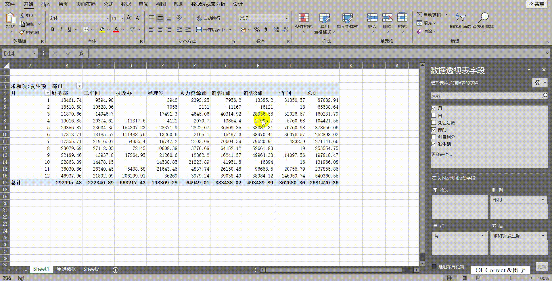 问题一:面对一张流水账式的原始数据表,如何快速创建透视表并按月查看每个部门的发生额?